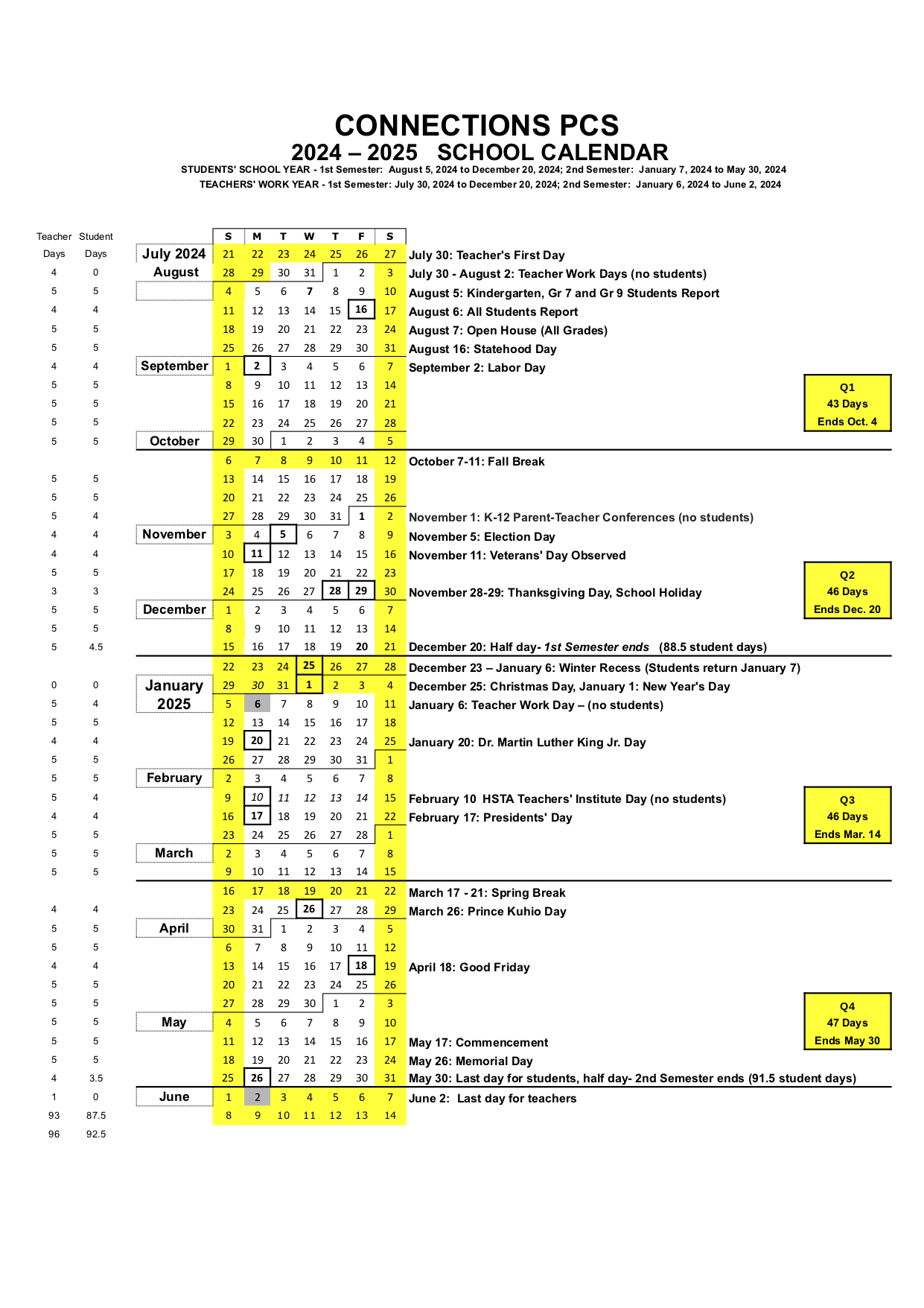 | 8:35a-10:00a | 1hr. 25 mins | Period 1 (M, W) Period 4 (T, Th) |